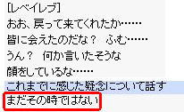 | 2.もう一度、レベイレブに話しかけて下記のようなメッセージが出るまで 繰り返し話しかけます。選択肢に「なぜこんなことに?」が表示されるようになりますので 何度か繰り返してください。 | |