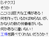 | 4.再びホテルの「シドクス」に話しかけます。 そうすると次は、アインブロックの工場を調べて欲しいと言われます。 | |