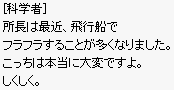 | 8.中にはいると「化学者」がいます。また実験用の機械もあります。 話しかけると自分一人で仕事をさせられているという話になります。 研究所の所長は、遊びに行ったと言われます。 実験機械の中央もクリック(謎の物体)できます。 | |
