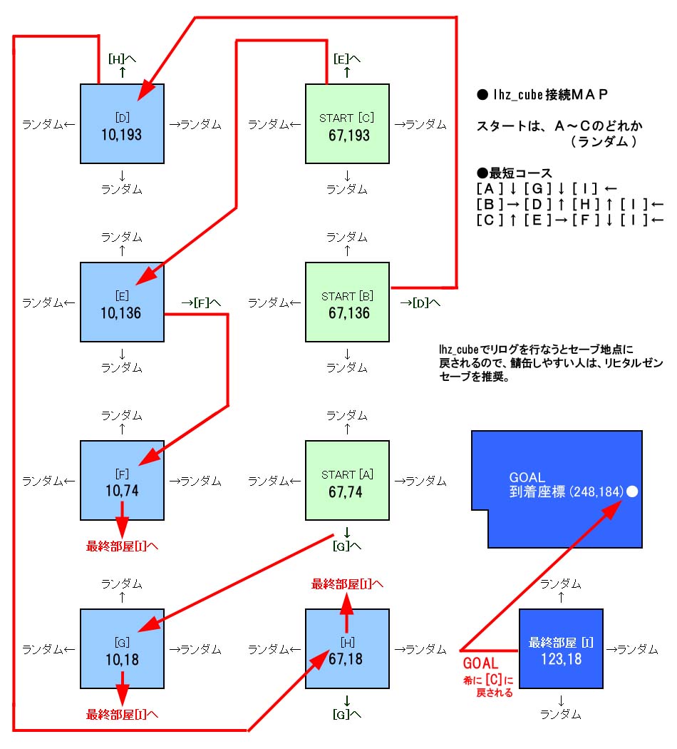 | 6.キューブの部屋に移動したら 11時(左上)→1時(右上)→4時(右下)→7時(左下) これを何回か繰り返すと吹き出しがたくさんある部屋に移動できます。(2回〜5回ぐらい?) (キューブ部屋の画像をヨッシー様より頂きましたので下記画像を参考にしてください) たどり着いた部屋は、いろんなところに吹き出しがあり謎解きになってます。 | |