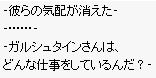| 1.リヒタルゼンの平凡そうな男ガルシュタインに話しかけます。 選択肢が出るので「こんにちは」を選択して会話を終了します。 その後、繰り返して話しかけて会話の内容が同じものになるようにします。 (ここを飛ばして「4」から開始しても通行パスが入手出来ます。「1」〜「3」は、大統領クエストに必要になります。) | |