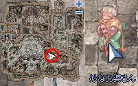 | 3.ジュノーの「妙なおばあさん」(中央広場から右下の方)と話しかけます。 (対話をすると呪いにかかります) 「子供がよく泣くのですか?」を選択します。 | |