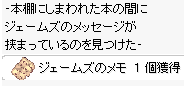 | 8.机があるので「2個目の引出し」と「3個目引出し」を確認してみます。 そうすると「K.Hの手紙」が手に入ります。 続いて近くにある「本棚」をクリックして「ジェームズのメモ」を見つけます。 | |