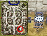 | 22.ゲフェン町の北にいる「シュウン」に話しかけます。 そうすると4つの石盤を1つにまとめてくれます。 そして、話を続けて「一度行ってみましょう」を選択するとゲフェンフィールド09に移動させてくれます。 ゲフェン町から←↓→のマップです。 | |