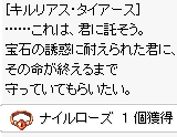 | 25.モロクの「考古学者タイアース」に会いに行きます。 そうすると、「ナイルローズ」と経験値?を手に入れることが出来ます。 (会話進めてたら止まってしまい、リログさせられました。↑「ヘリオンの目」持ってない場合です) 「ヘリオンの目」を持って話しかけると経験値+ナイルローズ+青箱1個がもらえます。 (ヘリオンの目は回収される。) (上納設定してると取られてしまう) ○ナイルローズ(アクセサリー、スロット1、HP+10) | |