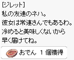 | 6.「ジレット」に話しかけるとおでん3個と経験値1000をくれます。 何回も繰り返せます。 | |
