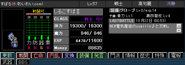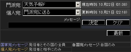 | 発言 | 門派通称(コメント)をつけられます | 更新 | ステータス画面を更新します。 連打禁止 |